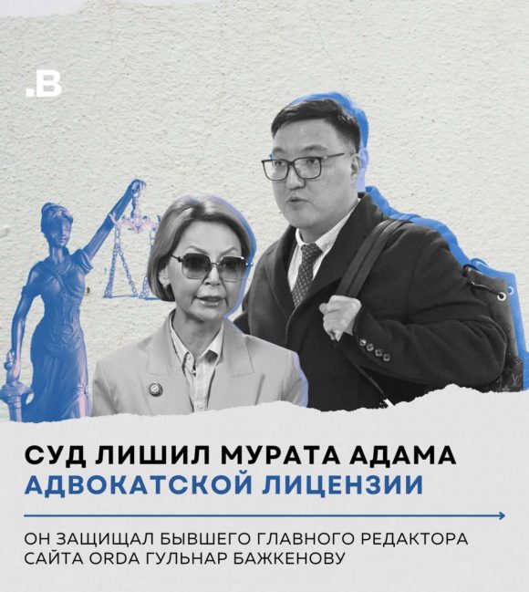 Бостандыкский районный суд по гражданским делам города Алматы лишил лицензии адвоката Мурата Адама, защищающего главного редактора издания Orda Гульнару Бажкенову.